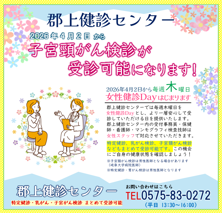 郡上健診センターは、郡上市の指定医療機関です。市が定める各種健診を実施しています。